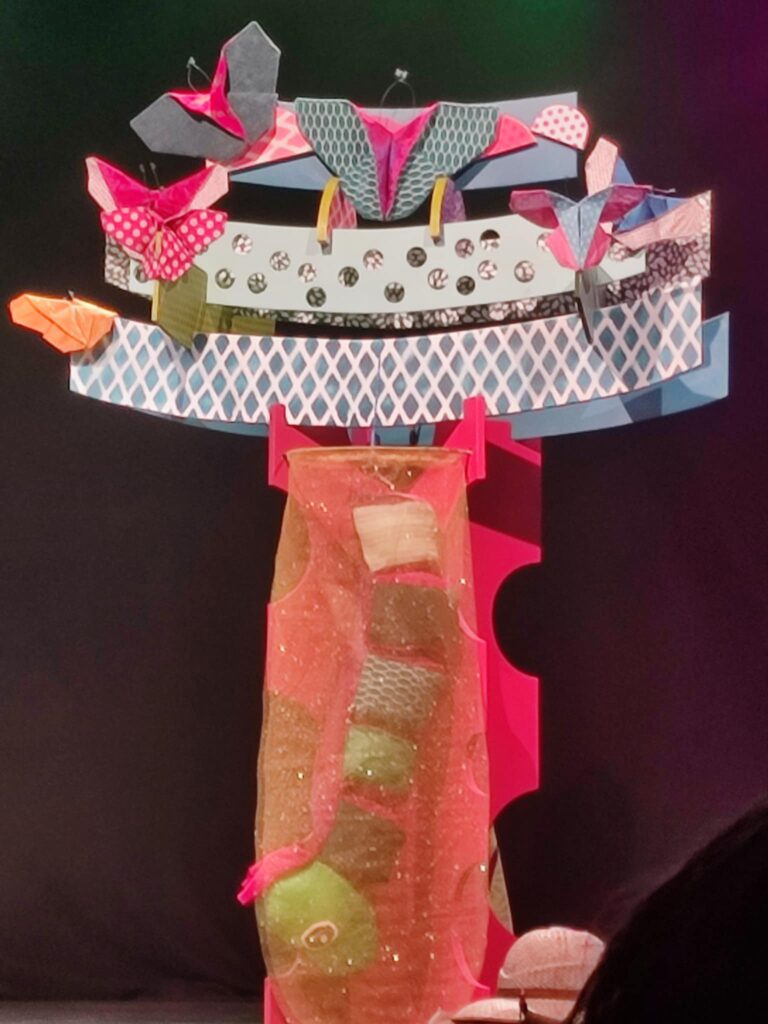 Fly Butterfly utilise des matériaux de récupération pour son décor: bois, tissu et outil électronique: le Joué play!