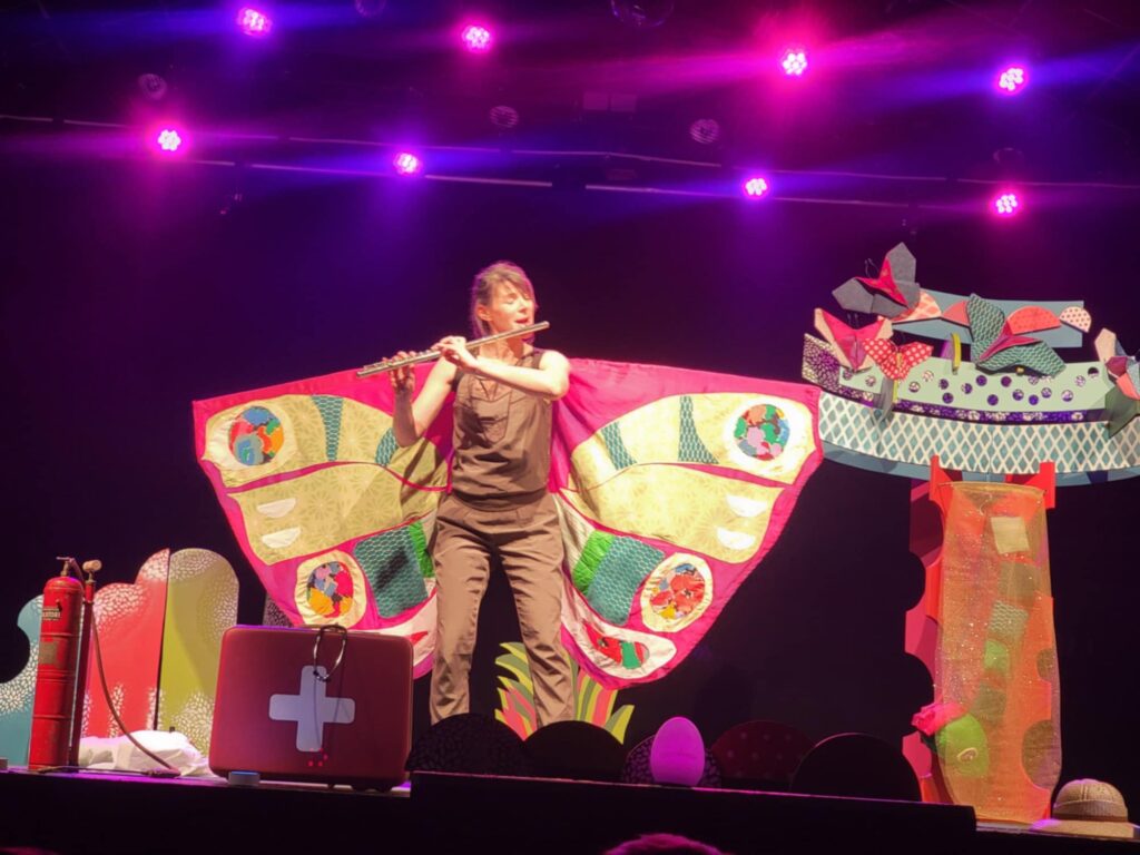 Fly Butterfly est une création originale qui mêle musique, poésie visuelle et exploration artistique. Le spectacle emmène le public dans un univers coloré et onirique où une exploratrice suit la métamorphose de la chenille au papillon.